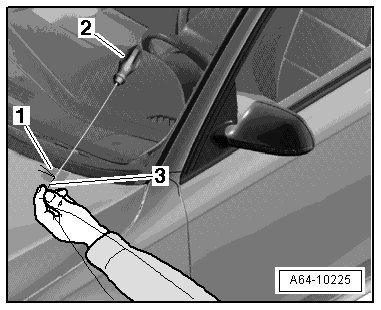 - If necessary, move the protective foil - 3 - along with the wire and cut the windshield free with the spool - 1 -.