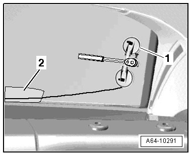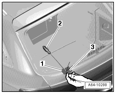 - Tension the cutting wire using the spool - 1 - and insert the plastic film - 2 - taken from the (VAS 6452) to protect the wire and the glass.