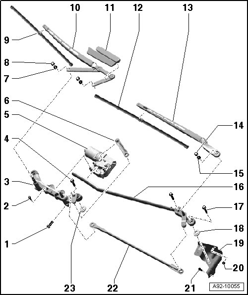 • Adjusting, refer to => [ Windshield Wiper Arms, Adjusting ] Windshield Wiper Arms, Adjusting.