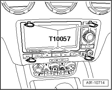 - Remove the navigation system with cd drive control module from the instrument panel using the grip eyes on the radio removal tool.