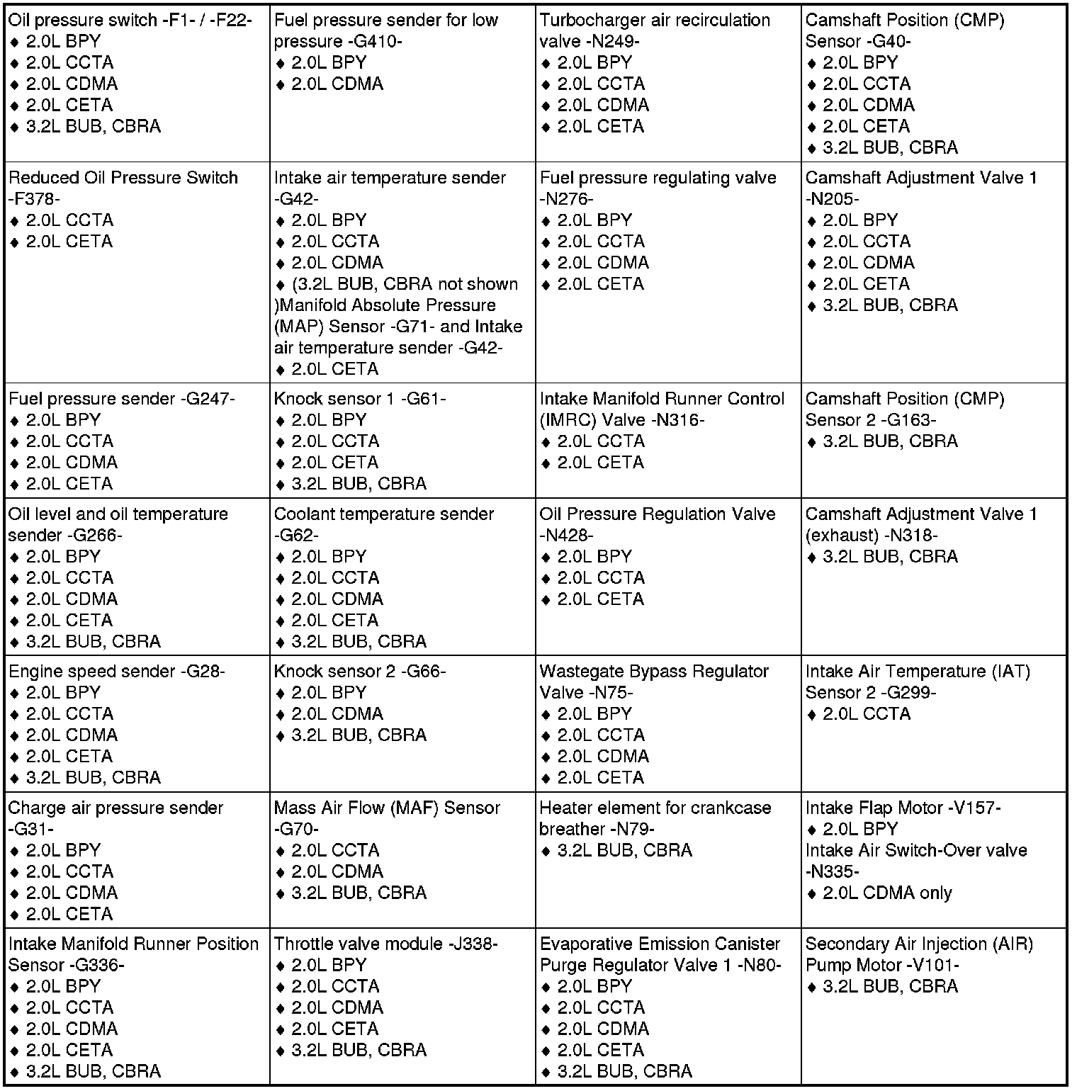 TT Quattro Roadster (8J9) L4-2.0L Turbo (CETA)