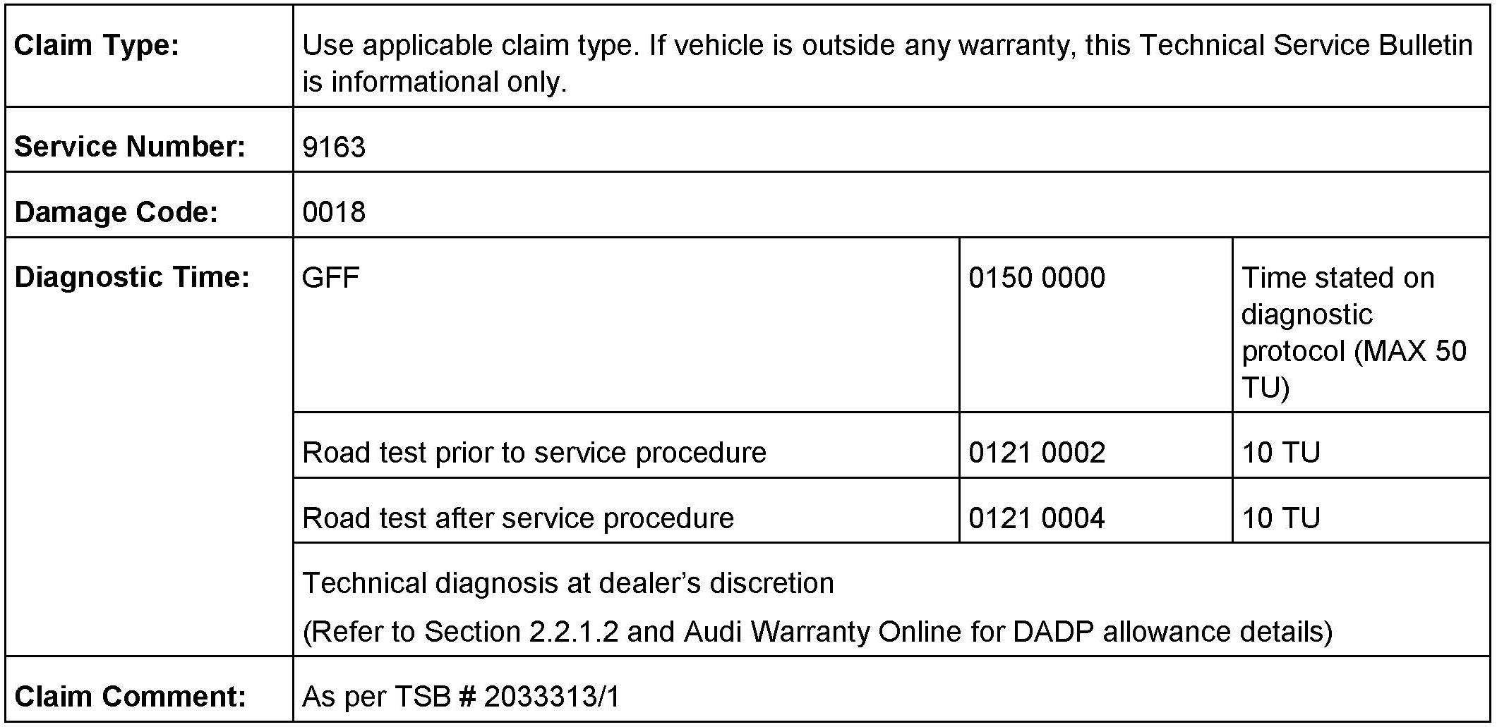 All warranty claims submitted for payment must be in accordance with the Audi Warranty Policies and Procedures Manual. Claims are subject to review or audit by Audi Warranty.