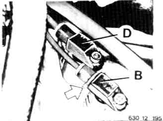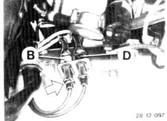 - Pull off plugs on speed sensor (D) and reference mark sensor (B)