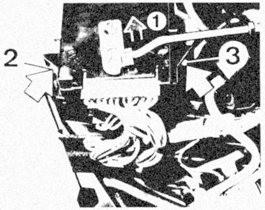- Disconnect the linkage (1) and remove screws (2) and (3).