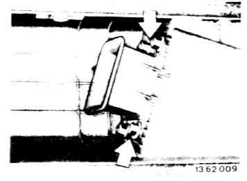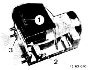 - Check rubber mount (1) and cushions (2), and check for correct seating.