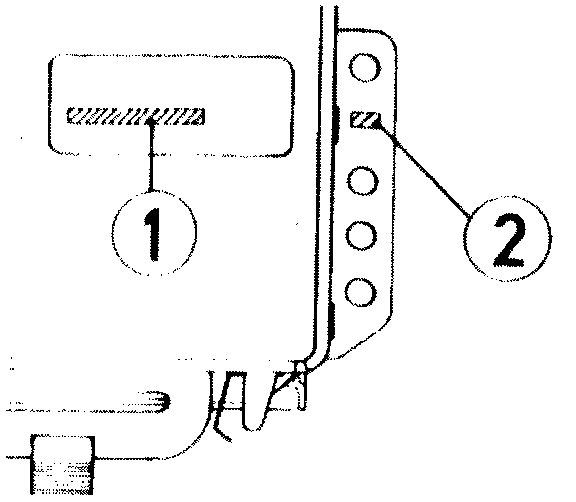 - Check code number (1) and manufacturing date (2).