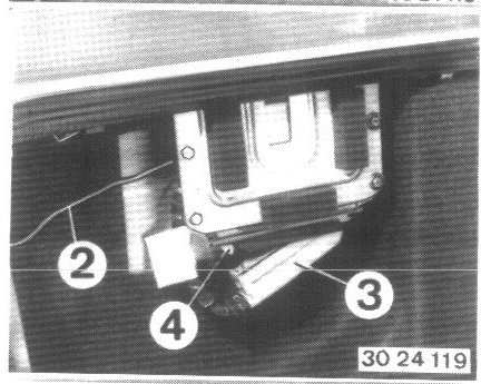 - Pull on plug (3) on control unit, after pressing back spring retainer (4).