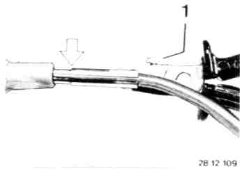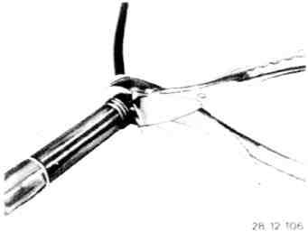 - Slide in ignition lead against stop (see picture), follow with pliers and slide in ignition lead further until connector is heard to engage.