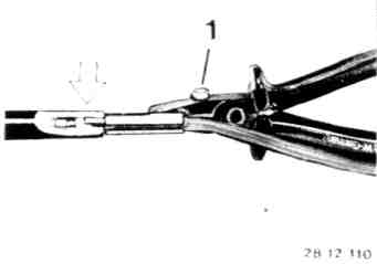 - Tighten screw (1) enough, that the pliers can be pulled back.