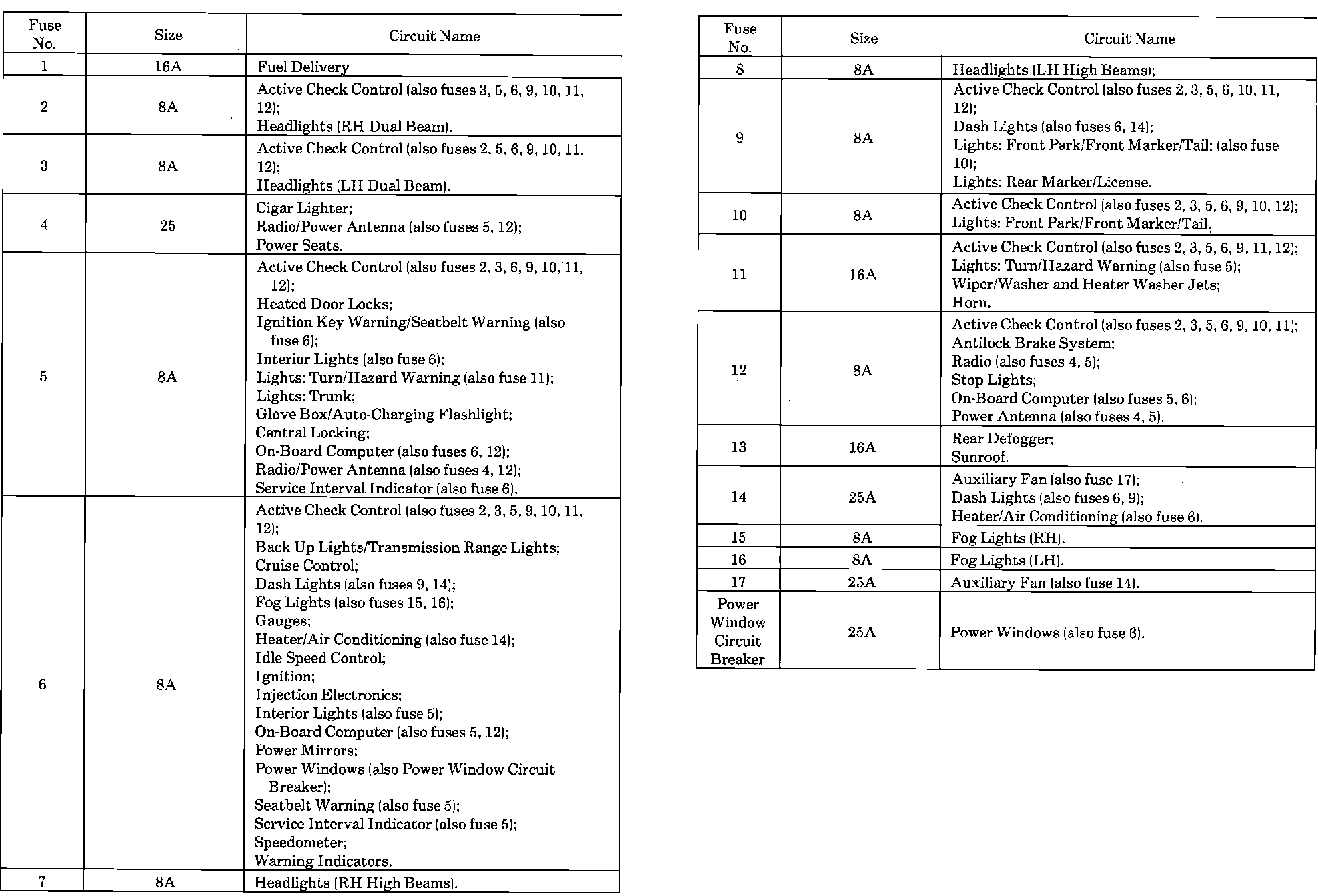 Fuse And Relay Positions In Distribution Box: