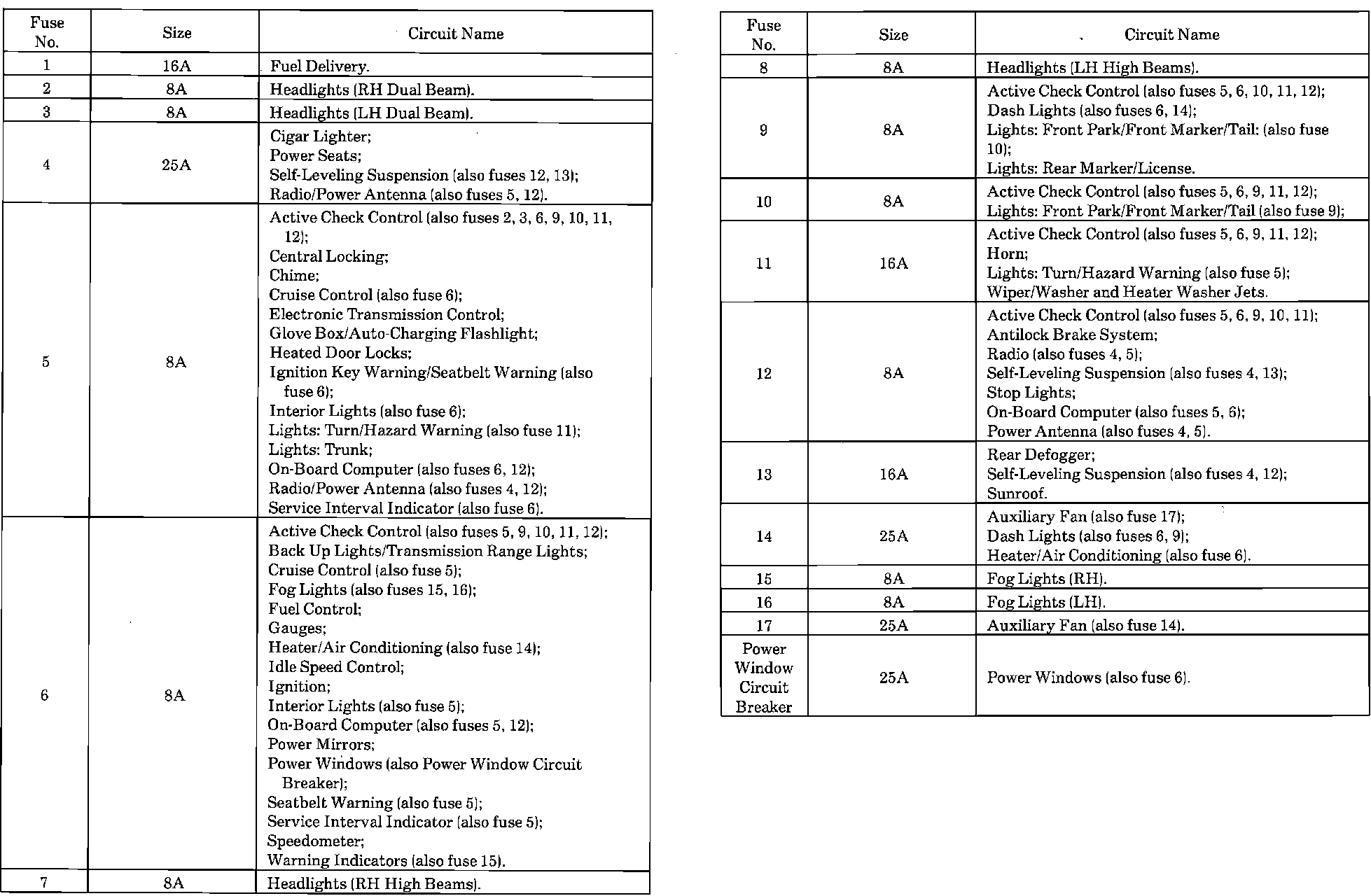 Fuse And Relay Positions In Distribution Box: