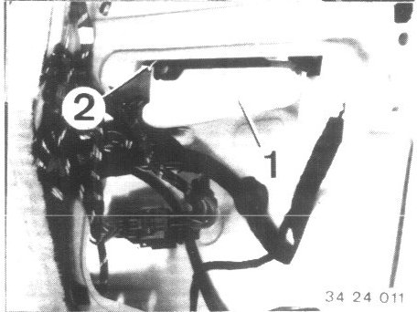 - Pull off plug (1) on control unit pushing back spring clip (2) for this purpose.
