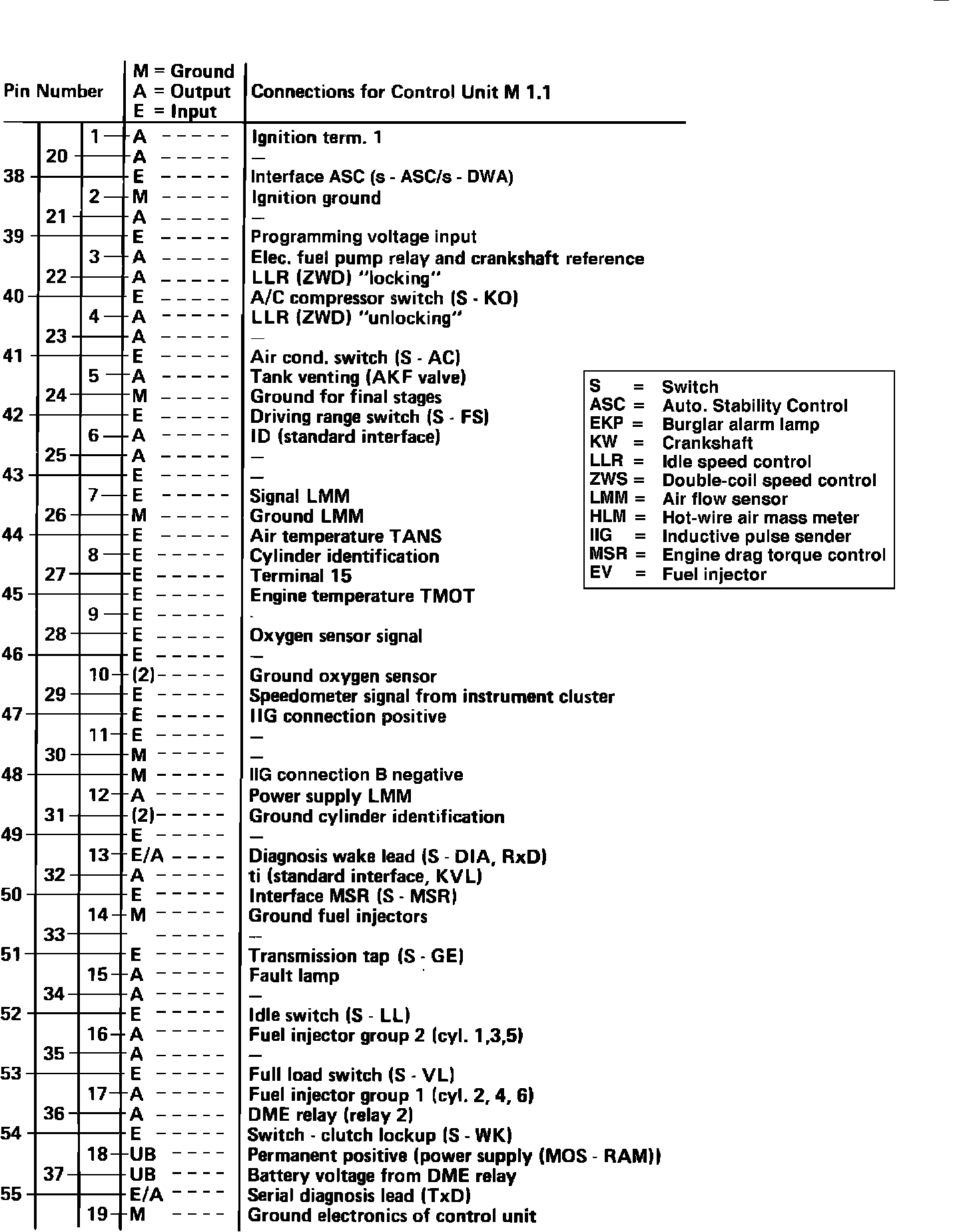 Fig. 71 55 pin Motronic control unit plug: