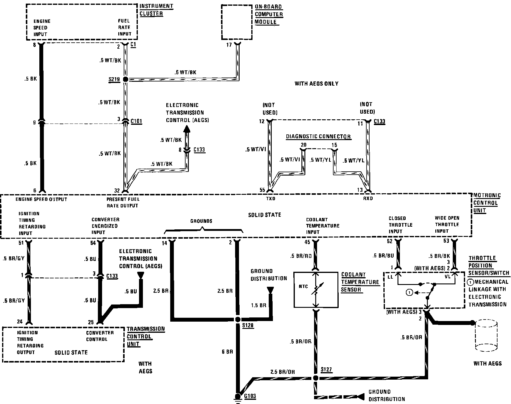 Injection Electronics (Motronic Control System) With Automatic Transmission. Wiring Diagram:
