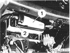 - Push back spring retainer (2) and pull off plug (1) on the control unit.