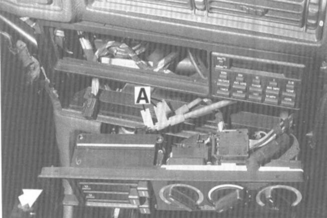 2. Reach in through radio opening and push tab outwards (toward steering wheel) and remove panel just far enough to disconnect connectors and cables from back of unit.