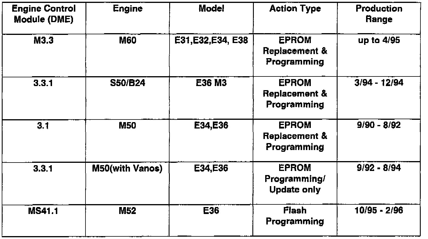 ^ MODIC software version P8.0 (programming/encoding) will allow DME programming of the following engine control module versions: DME M3.1; M3.3.1; M3.3; M5.2 (M73).