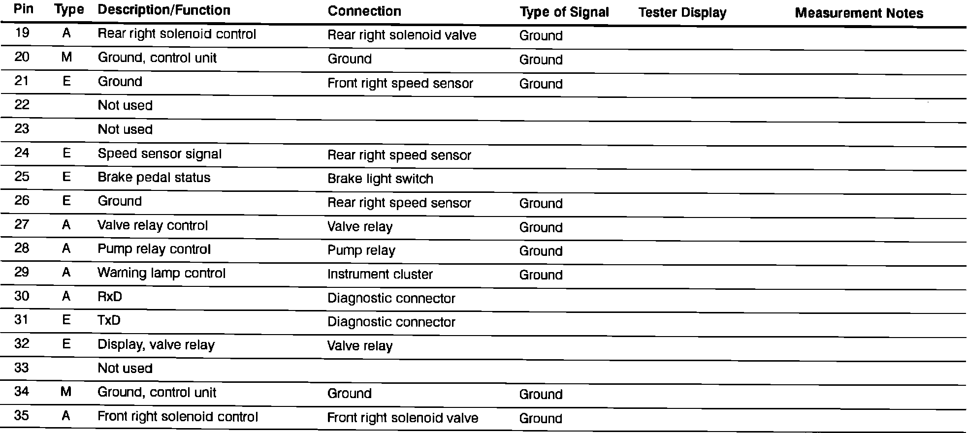 Anti-Lock Brakes (ABS) Pin Assignments (X11): Pins 19 Thru 35: