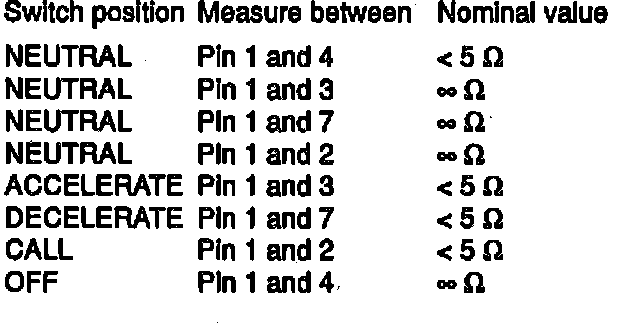 Fig. 9 Cruise Control Switch Resistance Specifications: