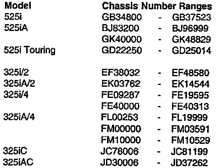 The Chassis Number Ranges listed below are only for informational purposes and are not to be considered as the only deciding factor.
