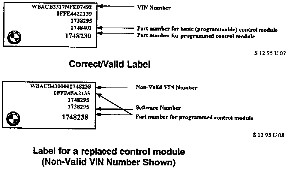 This information can be used to determine if the original DME control module is still installed in the vehicle. The information contained on a correct/valid label can be used to enter data (part number for a programmed control module) as requested during the determination phase.