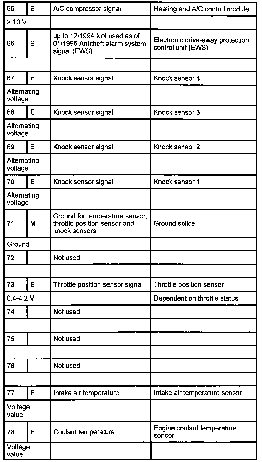 Pin Assignments 65-78: