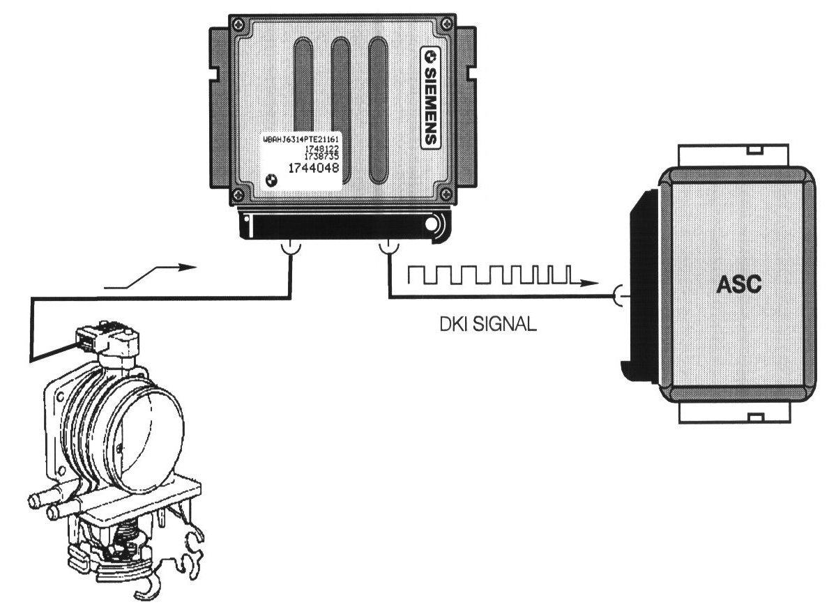 DKI is the throttle position output signal to the ASC Control Module (if equipped). The DKI signal is directly proportional to the linear throttle position sensor input signal. This output signal is used by the ASC control module during ASC regulation. DKI is a pulse width modulated signal.