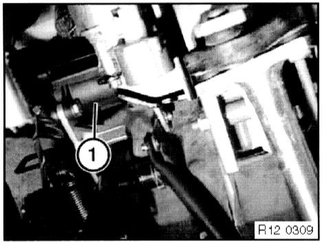 - Remove retaining disc (1) and disconnect lever.