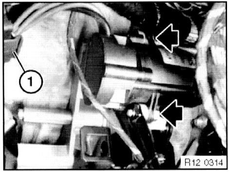 - Unfasten plug connection (1). Unfasten screws.