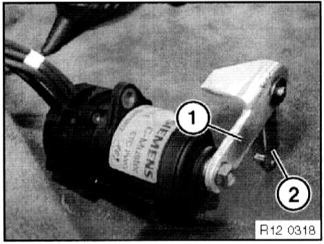 CAUTION: Lever (1) is factory-set and must not be disconnected. If the lever (1) has been removed, the entire accelerator sensor must be replaced!