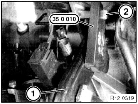 - Note installation position of accelerator sensor, also noting position of levers (1 and 2).