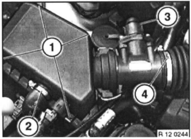 - Remove upper section of right intake filter housing with mass air flow sensor.