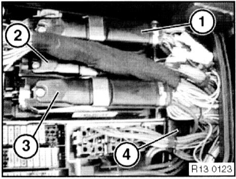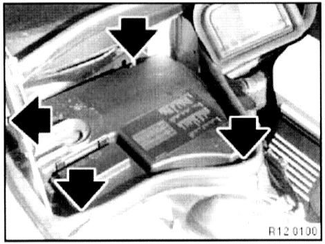 - Control unit (2) (DME 2): disconnect plug connection and remove control unit from bracket.