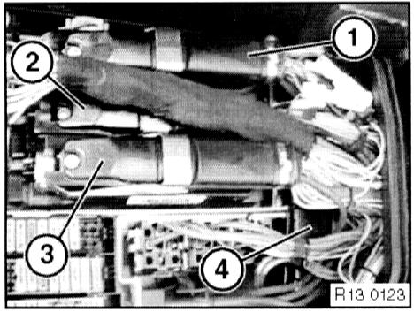- Control unit (2) (DME 2): disconnect plug connection and remove control unit from bracket.