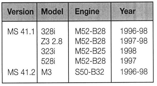 The introduction of the 328i in the 1996 model year also brought the first engine management system manufactured by Siemens to the US market; M541 .1. Compared with Bosch systems, MS 41 .x systems uses a few unique sensors and control methods. MS 41 .x was also the first system to meet TLEV compliancy.