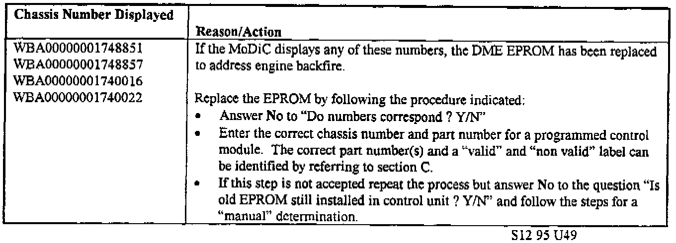 3) If the following statement is displayed on the MoDiC screen during the "Manual" determination phase, after a part number has been entered follow the steps indicated: