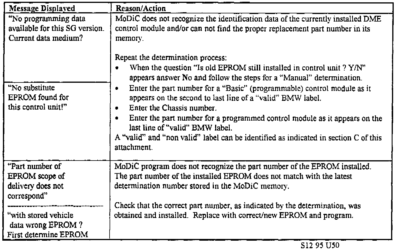 4) If the following statement is displayed on the MoDiC screen after a replacement EPROM has been installed and programming was selected, follow the steps indicated: