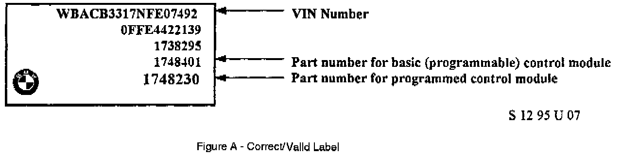 If you follow the steps for an automatic determination and the MoDiC display states "No substitute EPROM found for this control unit!" compare the BMW label located on the cover of the DME control module with those shown below and follow the directions indicated:Figure A - Follow the steps for a manual determination in the flow chart and enter the part numbers that appear on the label.