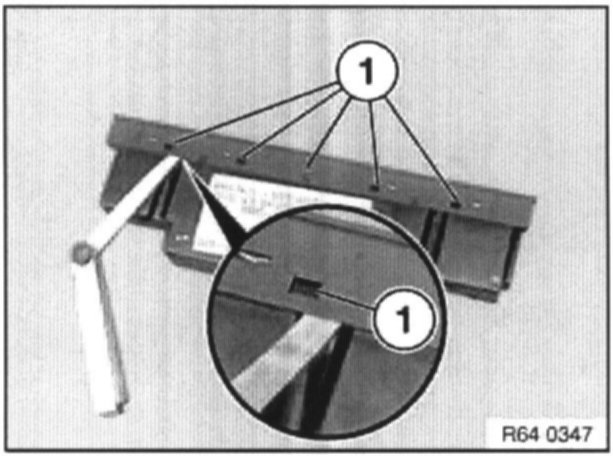 Carefully unclip clips (1) at top and bottom. Remove front plate.