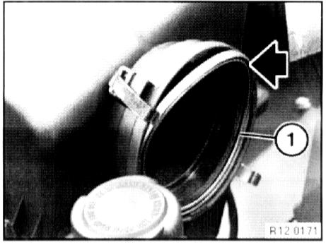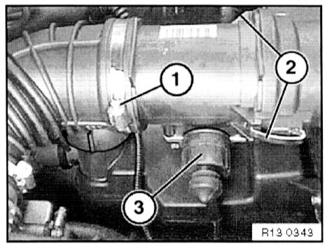 - Interrogate fault memory of DME control unit. Switch off ignition.- Unfasten hose clip (1).