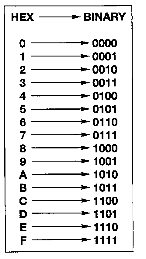 Hexadecimal numbers are single digit numbers and letters that have four digit binary equivalents (1's & 0's).