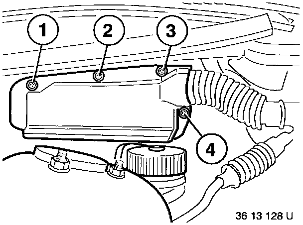 - Unscrew bolts (1 ... 4). Remove cover from firewall.