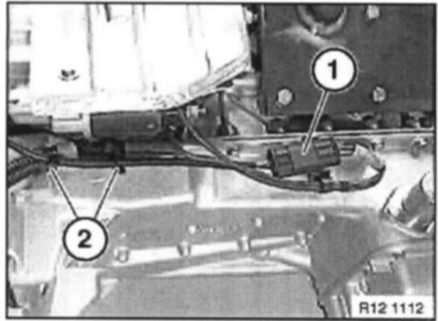 Disconnect plug from reversing light switch (1) and gear detection switch (2).