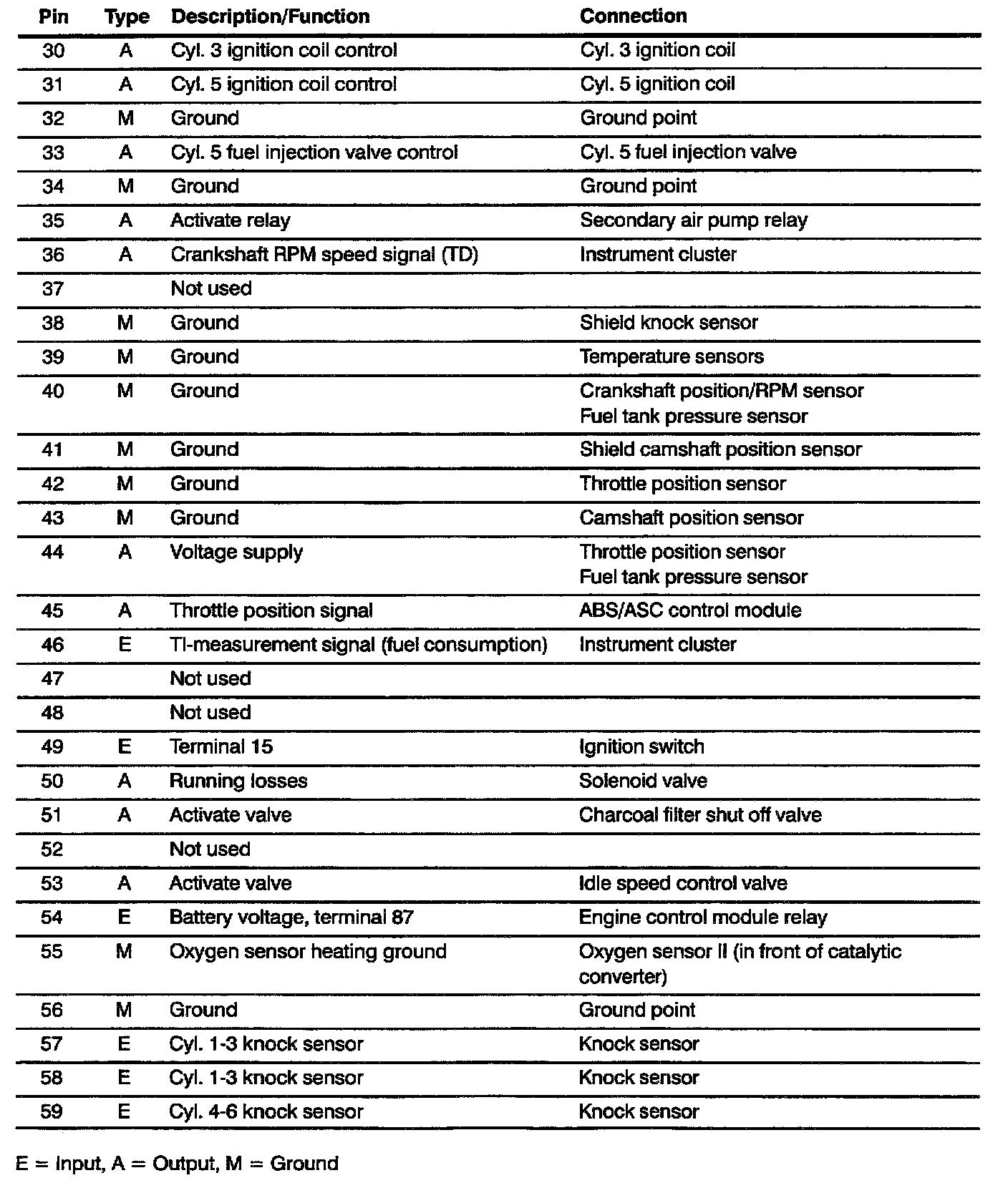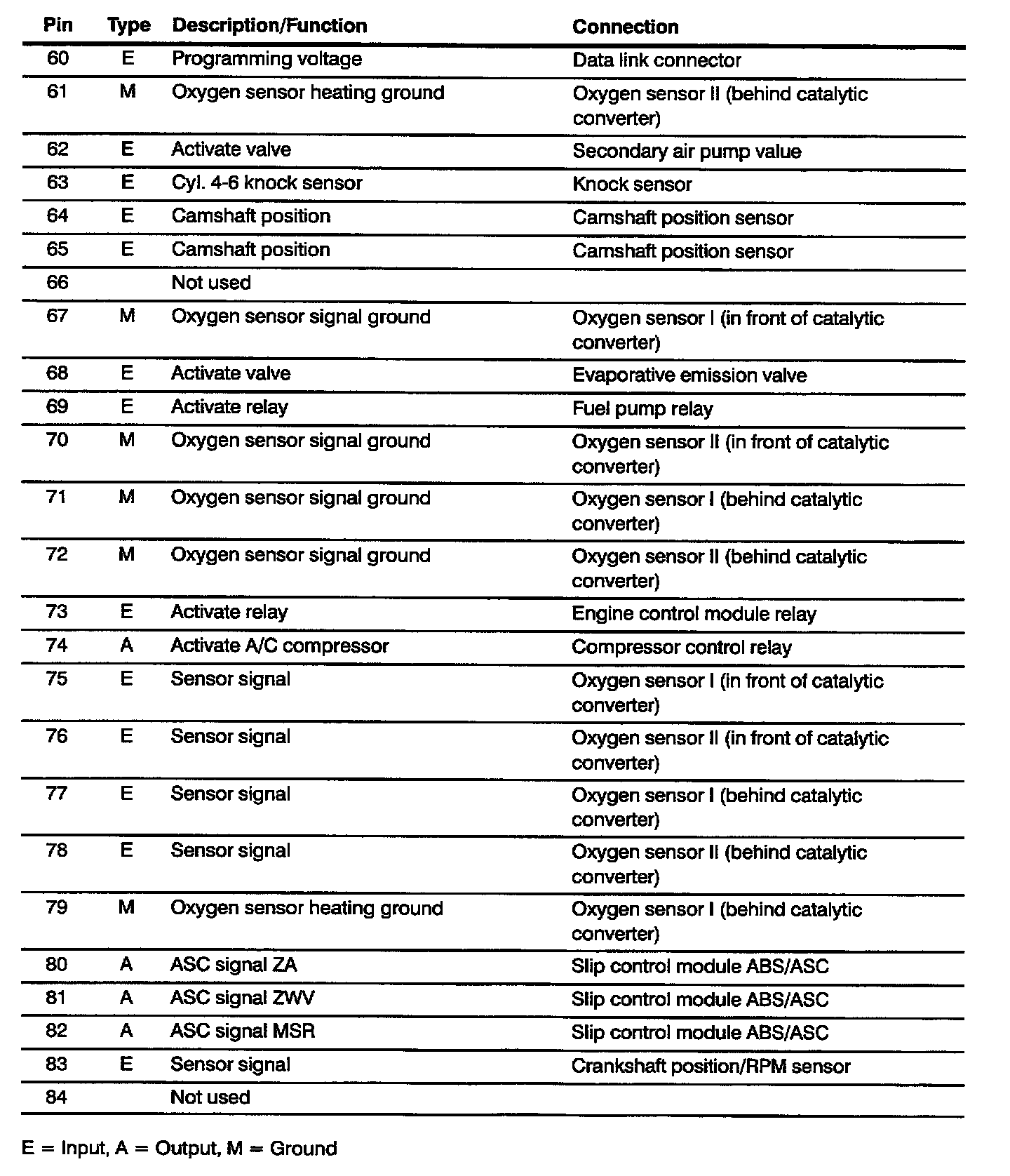 Engine Control System MS41.1: Pin Assignments (Part 3 Of 4):
