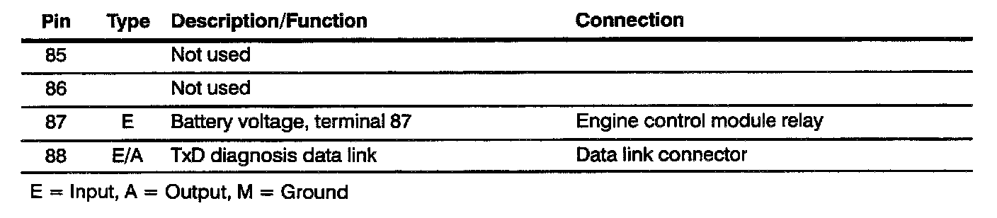 Engine Control System MS41.1: Pin Assignments (Part 4 Of 4):