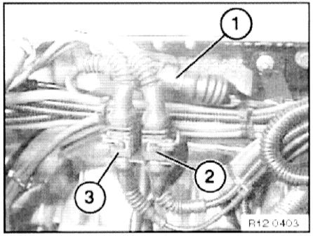 - Disconnect plug-in connection(3). Plug connection illustrated here with intake manifold removed.