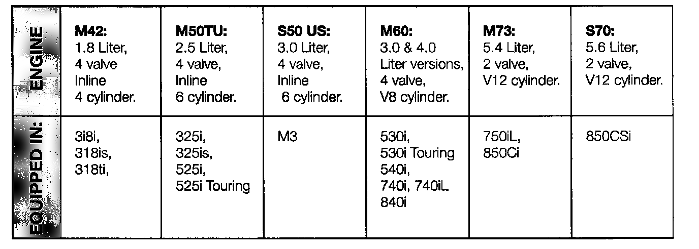 After the letter are two digits that identify the engine. Current US BMW models are equipped with the following engines: