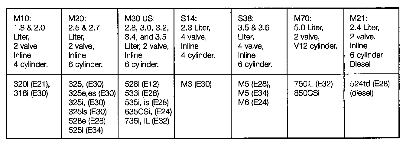 Previous BMW engines are as follows: