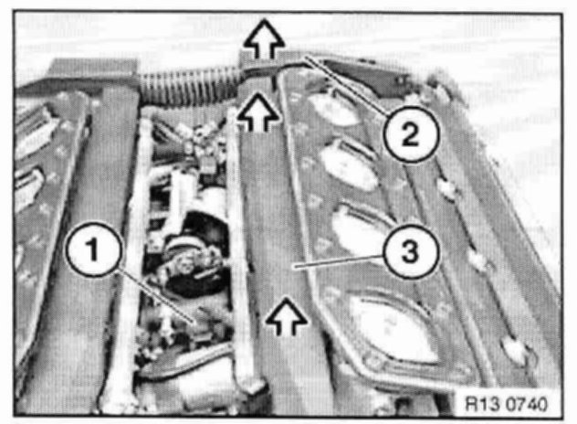 Unclip cable strip (3) from injector valves, push upwards and tie back with cable ties (e.g. to engine hood).