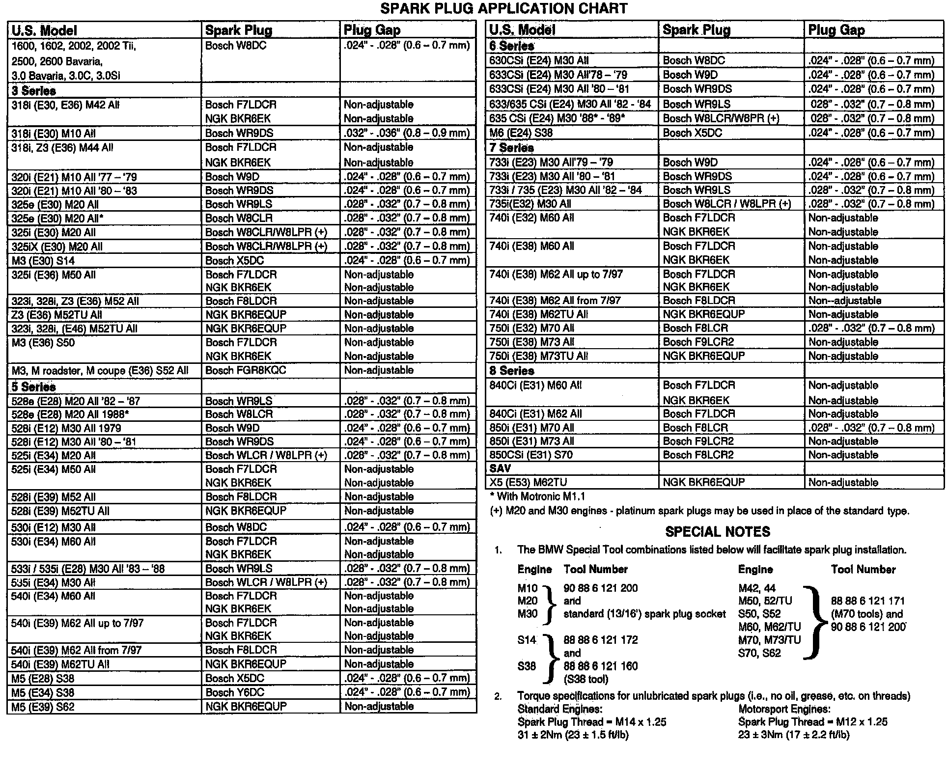 SPARK PLUG APPLICATION CHART